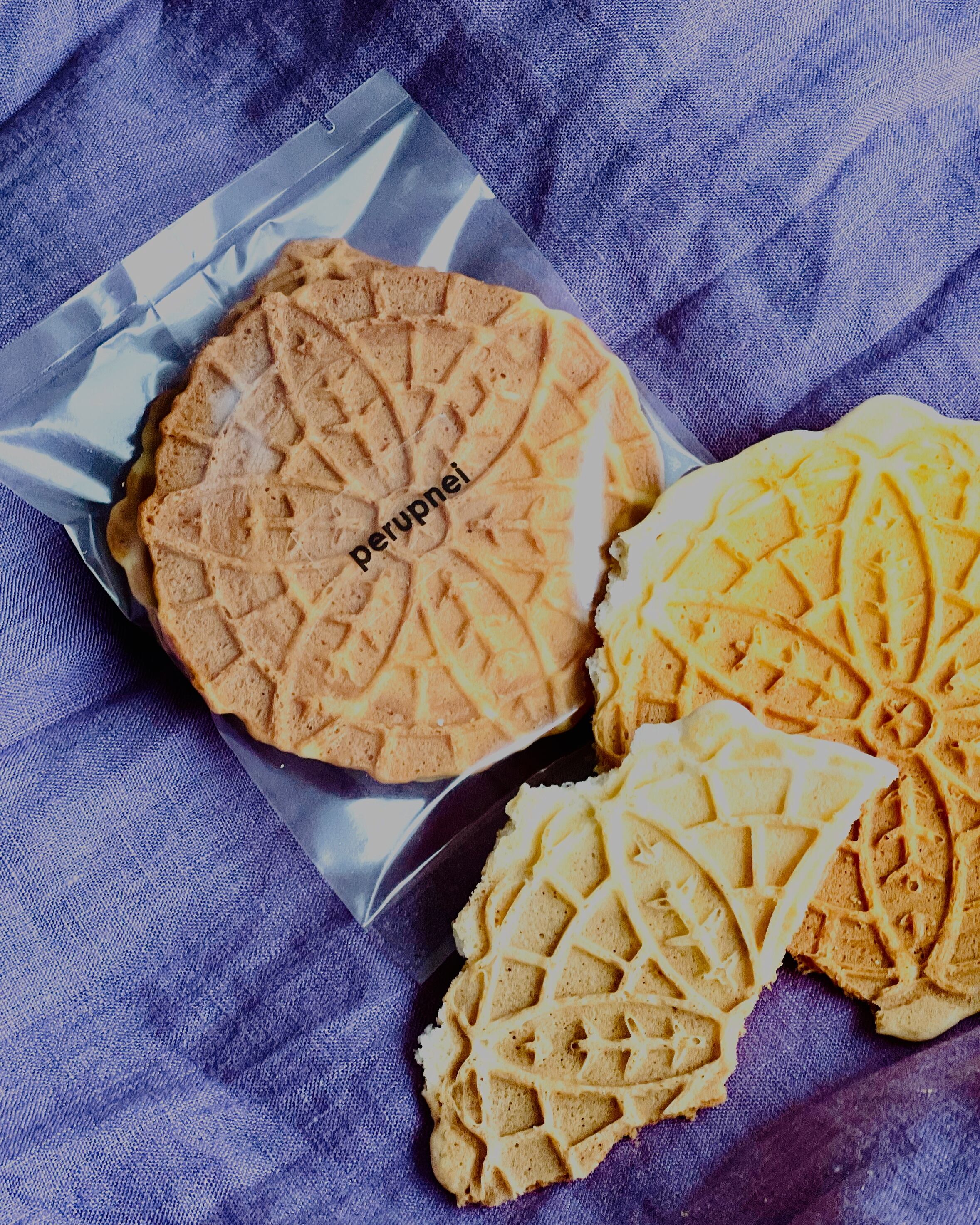 札幌とその近辺では手焼きのバターせんべいというのが売っていて、もっと平べったいですがたい焼きの型のような鉄の型に生地をながして焼いたものなんですよね。これをどうしても自分で焼いてみたくて、ビンタトニオのピッツェルというゴーフレットを焼く型で焼いてみました。売っているのよりはもうちょっと薄めを目指して焼いたので、お酒のアテには食べやすい軽さに仕上がっています。これは完成品!今後、チーズ味とか、ココナツ、エビ、ごまなどのフレーバーを考えています。