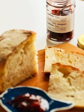 お待たせしました。今年も小樽のお隣、北海道の果物の里といえばの仁木町産のプルーンを使って、美しい紫色に、エキゾチックなシナモンの香りに、香ばしいクルミを加えたコンフィチュールを作りました。写真のようにシンプルなハード系のパンにチーズとともに合わせて、ワインを合わせてみてはいかがでしょうか