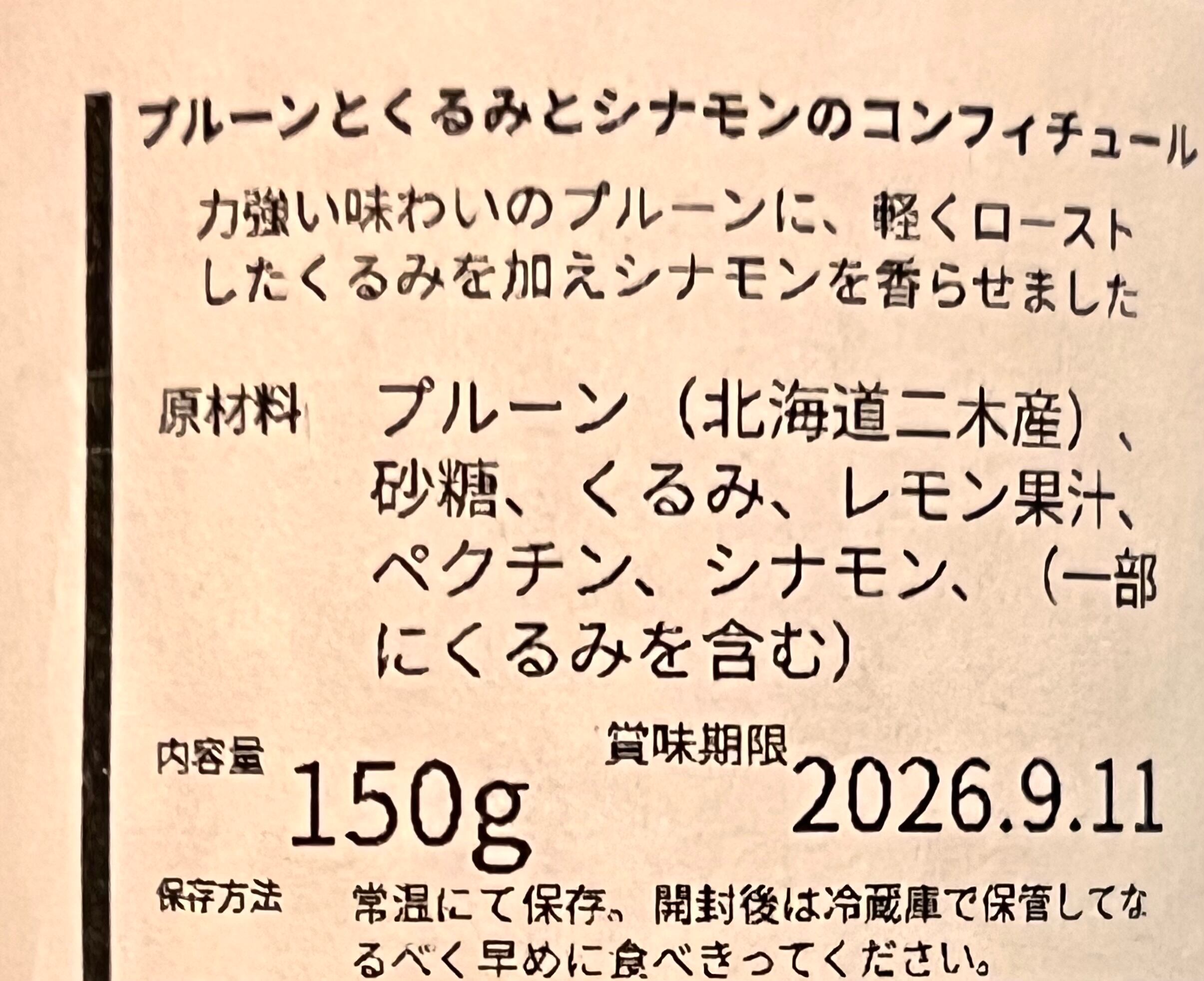 【プルーンとくるみとシナモンのコンフィチュール】150g入り