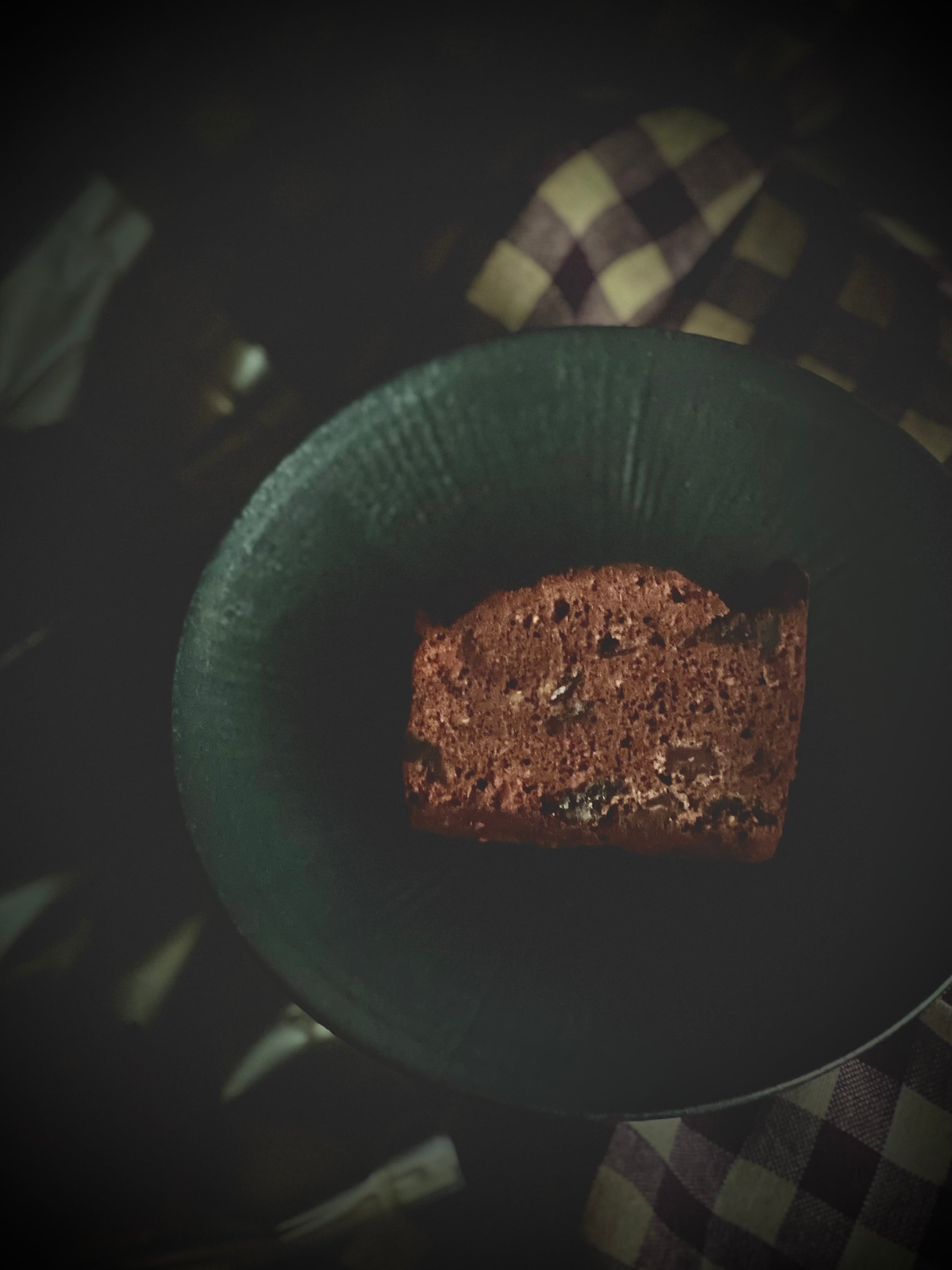 今ままでクリスマスの時期にドライのいちじくを使ったチョコレートケーキを焼いていたんですが、今年はいちじくだけでなくラムレーズンや赤ワインに漬けたクランベリーもたっぷりくわえて、甘さのないブラックチョコレート(エクトゥール)をたっぷり使ってずっしりと重厚なチョコレートケーキを焼きました。焼きあがりに自家製のチェリーラムのシロップをたっぷりしみこませました。スパイシーな赤ワインとかダークラムに合いそうですよ