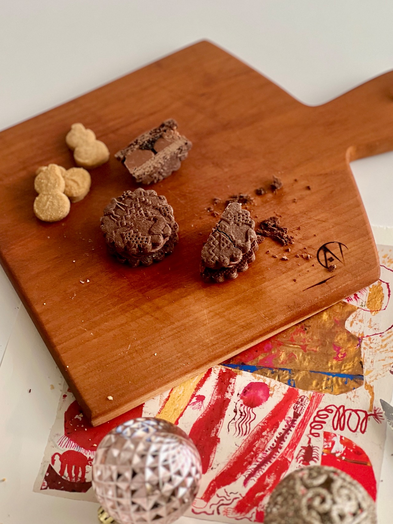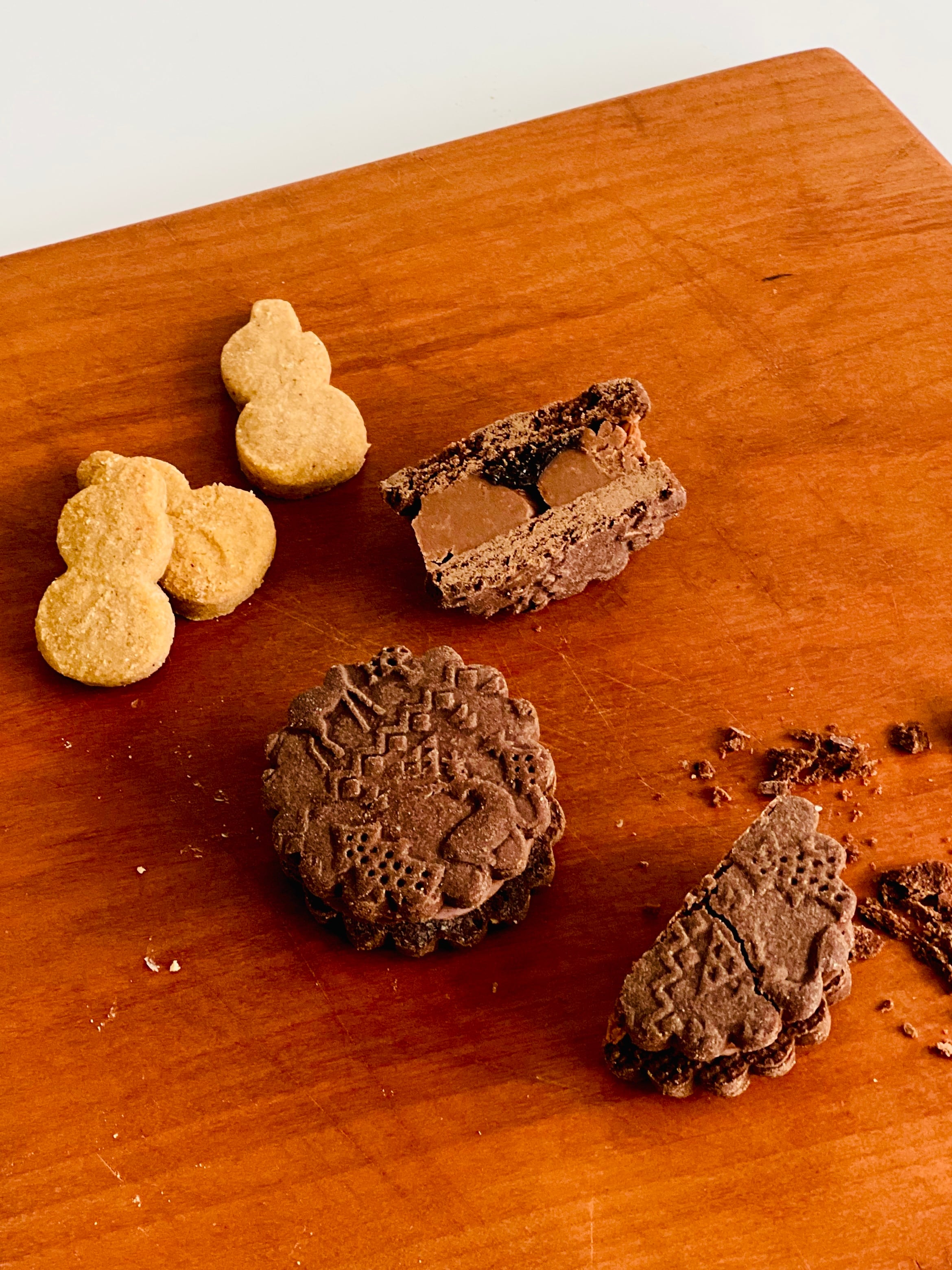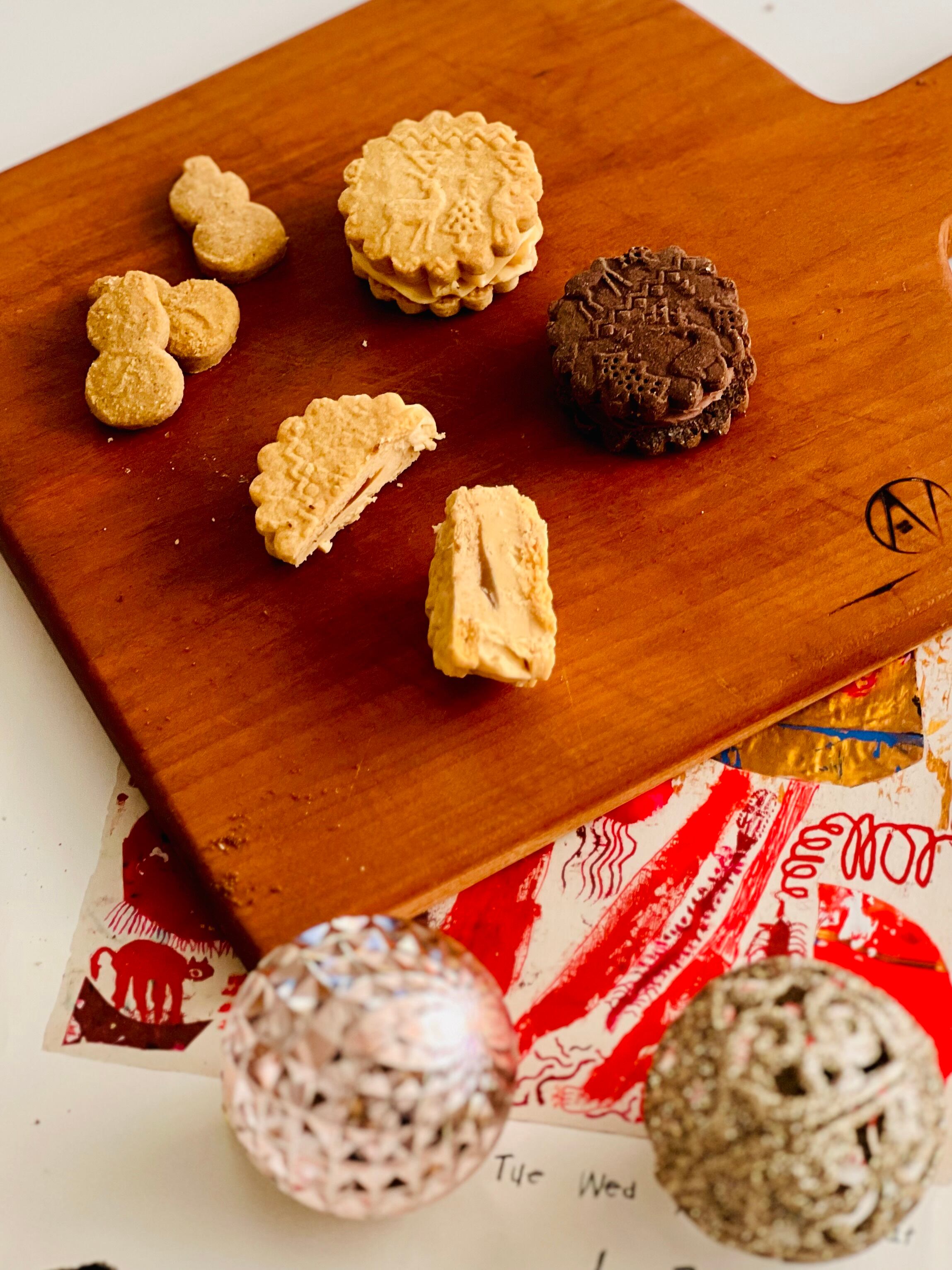 11月に焼いた「木彫りくまのガナッシュサンドクッキー」が好評でしたので、少々レシピとカタチを変えて、クッキーボックスに収めてみました。いつかクッキー缶を!と野望めいた気持ちがあったのですが、どのくらいの分量で何個できるか?的なデータが少なくて躊躇してい、中々できずにいたのですが、やっぱり難しかったです。数、というより思った通りに箱に収まらず、サイズを変えてクッキーを焼き直したりしてました。そんな苦難のうえ完成した【クッキーボックス】をゆるっと、微笑ましい気持ちで受け止めていただけましたら幸いです。パンデピスとセットで素敵なクリスマスをお迎えくださいね。