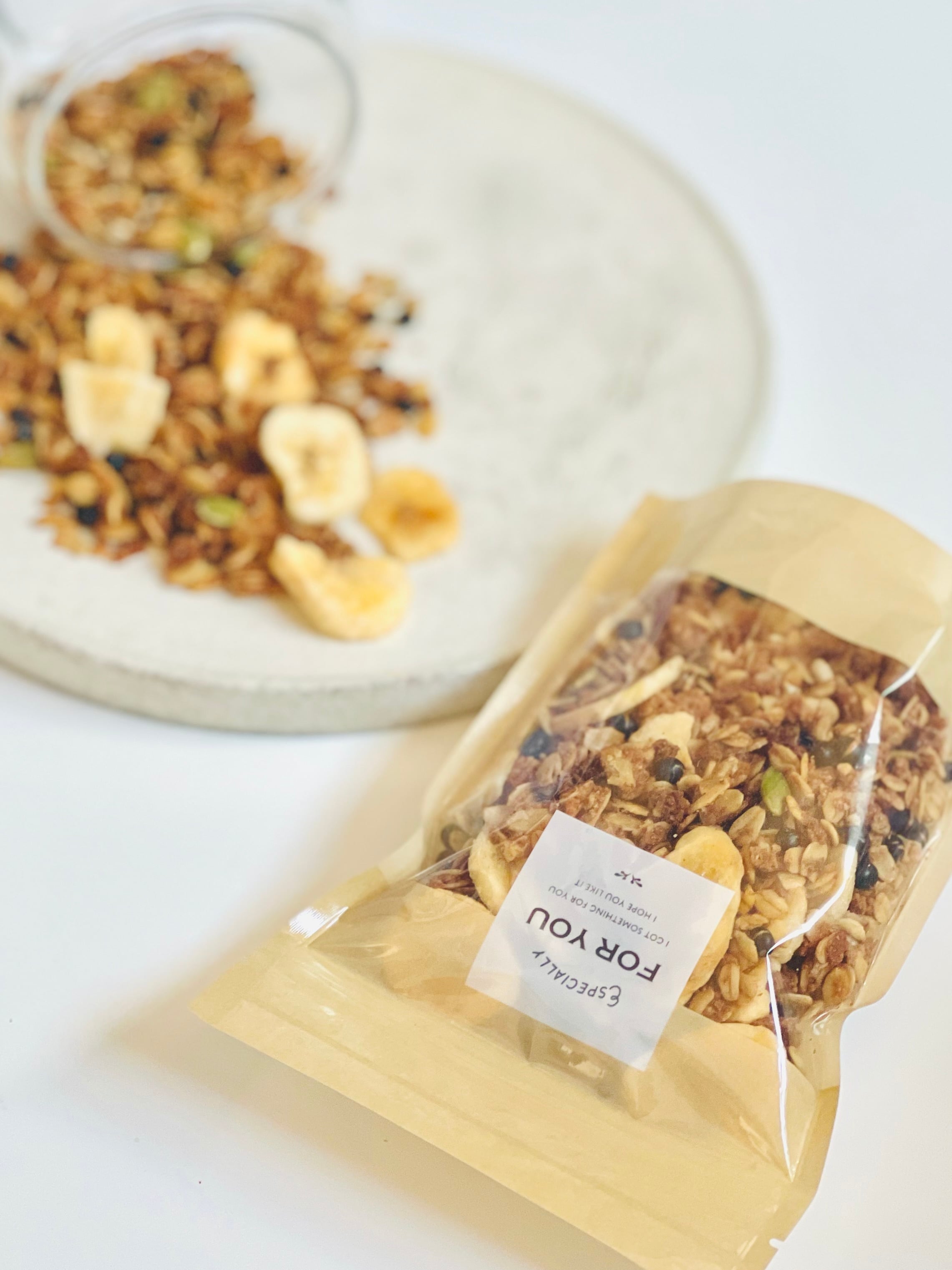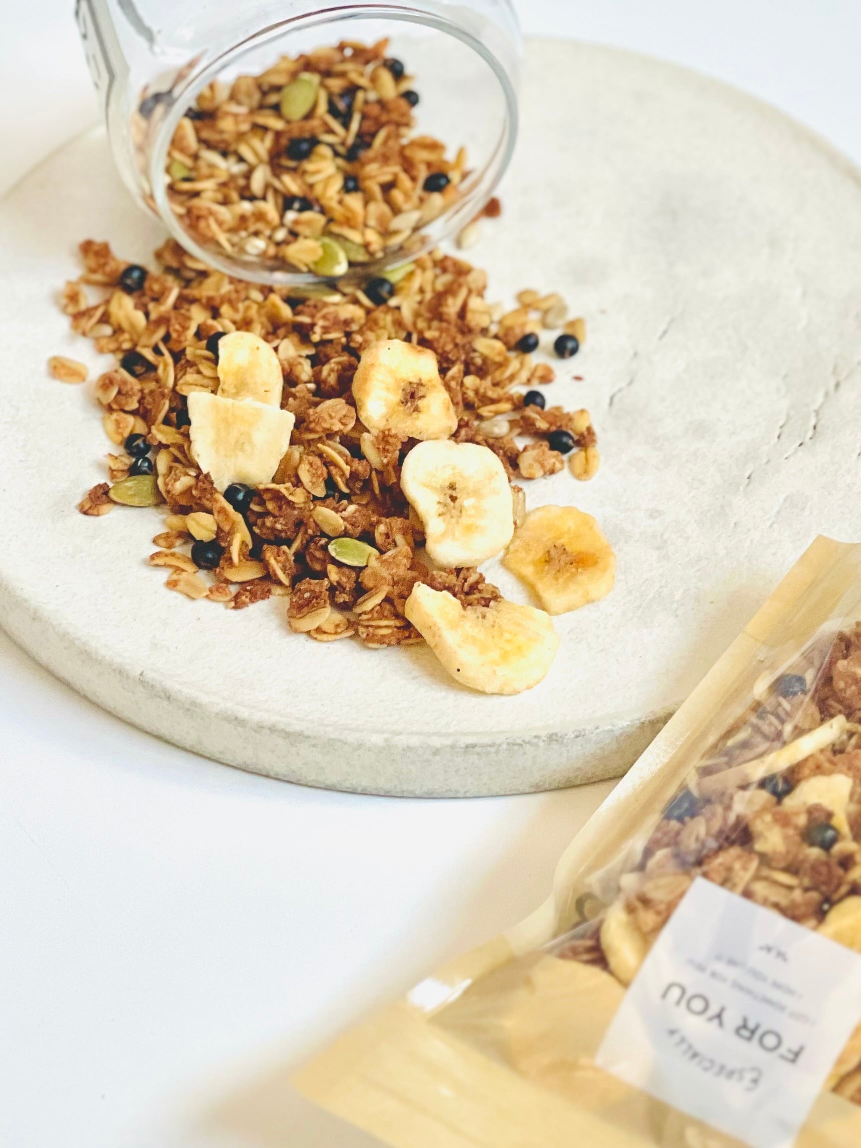 黒千石グラノーラはレシピを考えている時点で、つまり机上の時点でこれは美味しくなるなぁと思っていたので、じつは多めに焼いていました。めちゃ自信作!だっておからとメープルシロップの組み合わせを思いついただけで美味しそうだったんですよね。
