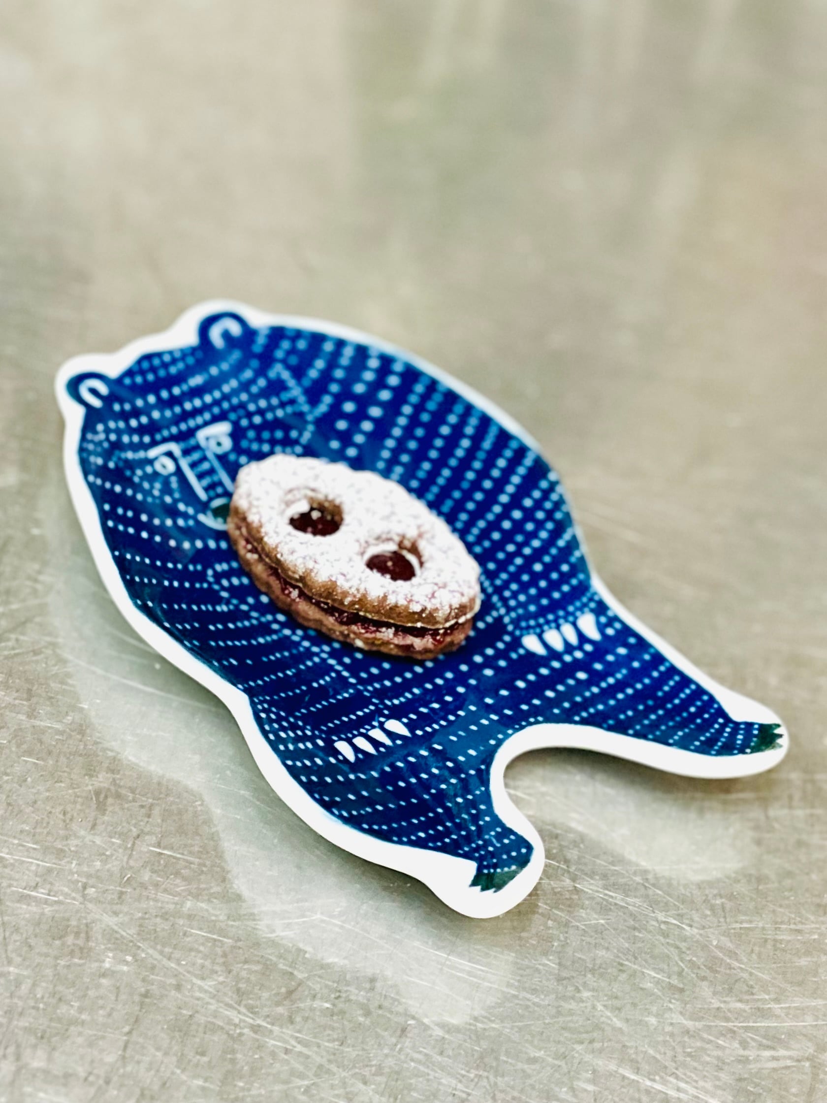 チョコサンドクッキーの二番生地でクッキーを焼きました。リュネットはフランス語でメガネの意味。木の葉のようなカタチなんですが真ん中に二つの穴がメガネなんですね。ジャムサンドです。クッキーの間にフランボワーズジャムをサンドしました。ジャムも手作りです。ココアクッキーをリュネットに焼いた後でジャムがないことに気がついて慌てて作りました。