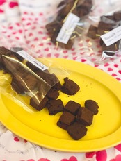 生地にココナツファイン(ココナツを細かく砕いたもの)を加えているので、生地の結束が弱くなって、口解けがよく焼きあがっています。少し苦みのあるココアの生地にカルダモンの爽やかな香りが広がりチョコチップがカリッとします。塩糀を使っているのでもぐもぐ噛んでいると旨味を感じられます。後旨(あとウマ)な味わいのお菓子です。
