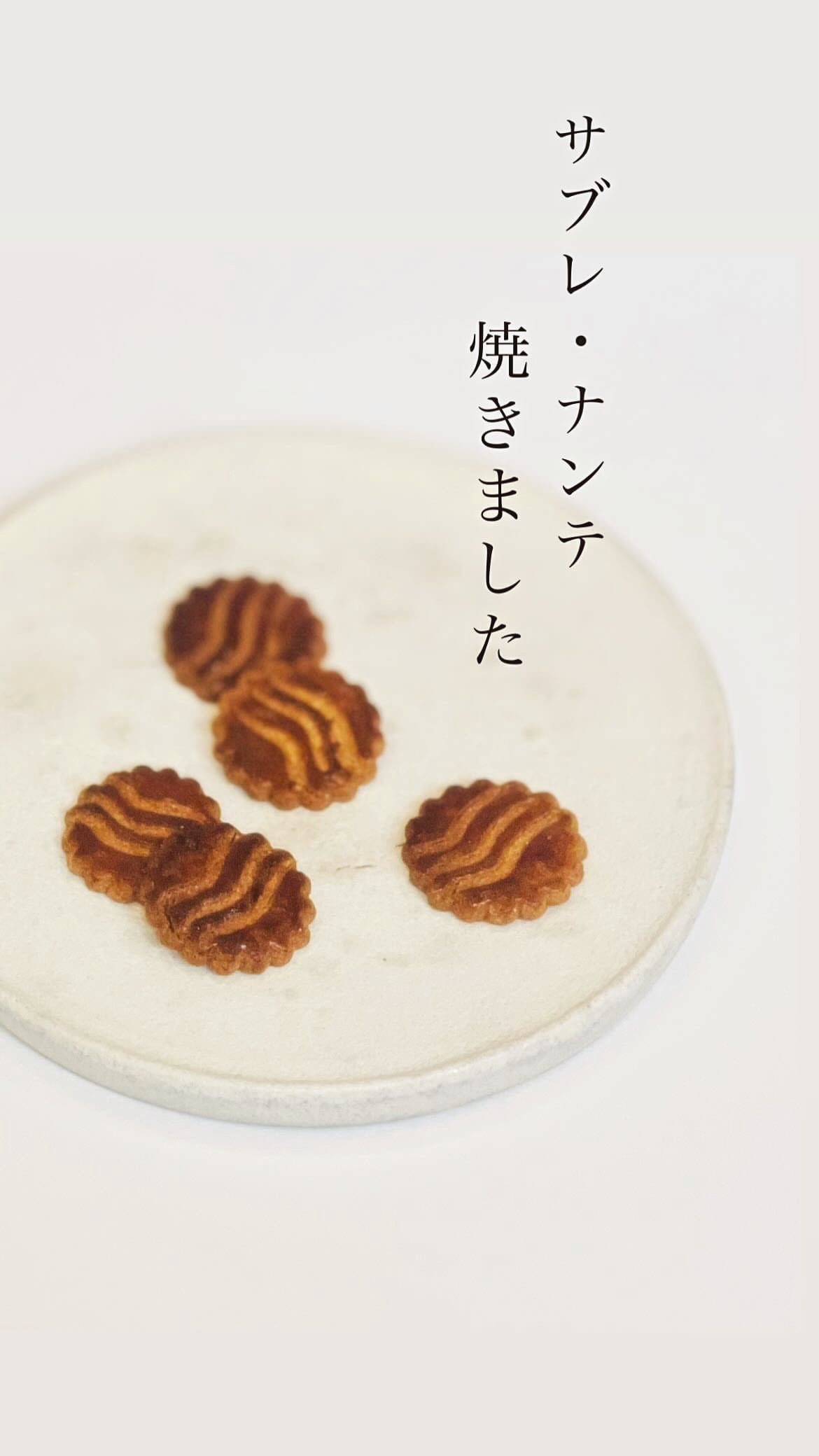 焦がしバター(ノワゼットバター)を使って、クセ強なサブレ・ナンテを焼きました。焦がしバターは文字通り、バターに火を入れて焦がしたもので、このバターはフィナンシェやカヌレに使われ、菓子にキャラメルのような味わいを添えます。キャラメルのような味わいのサブレ・ナンテぜひお楽しみくださいね。