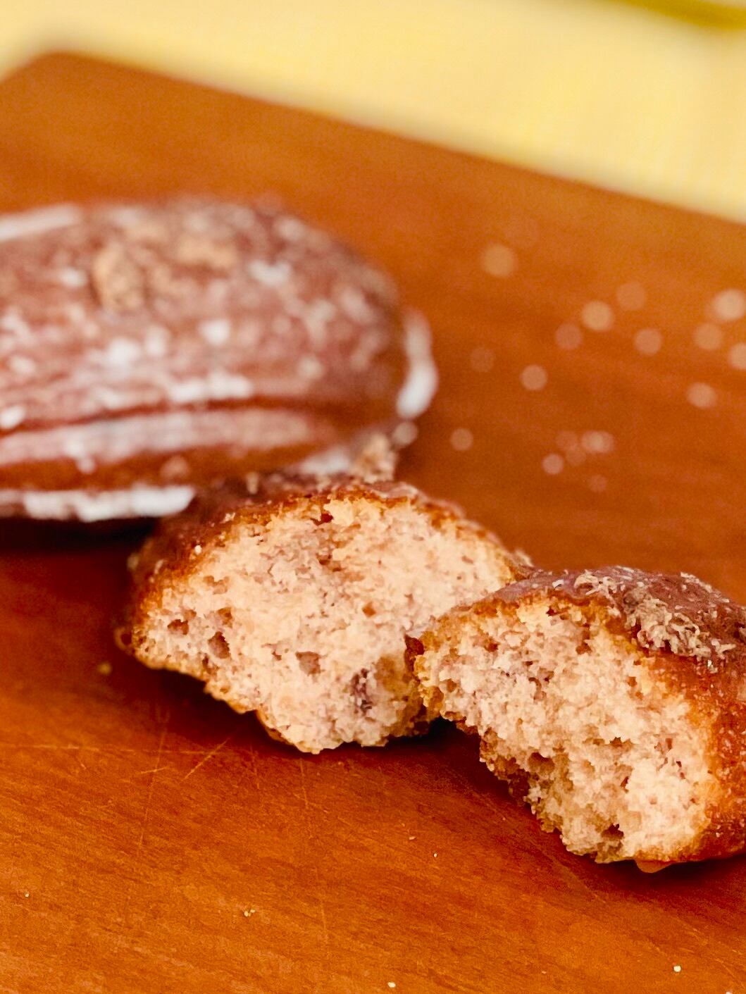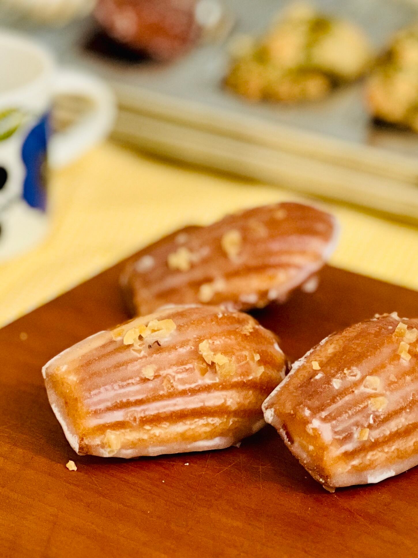 生地に細かく刻んだレモンのシロップ漬けと、サワークリームを加えました。サワークリームの爽やかな酸味とコクがレモンの甘酸っぱさを強調し、他のマドレーヌよりしっとりとした食感が生まれました。仕上げにグラスアローをかけて、レモンのシロップ漬けを散らしました。