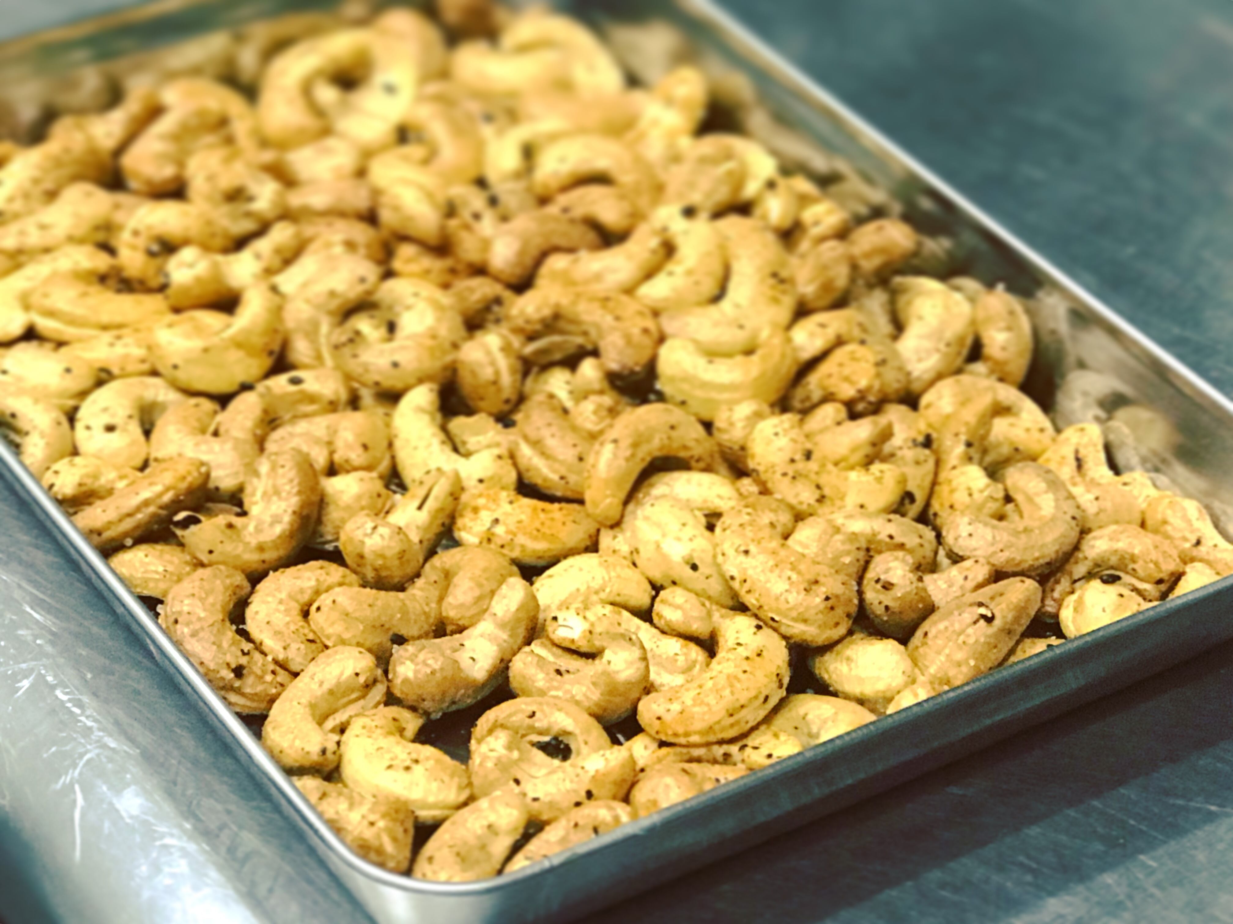 カシューナッツにまぶしつけて焼きあげ、ピリリと痺れるおつまみナッツを作りました。