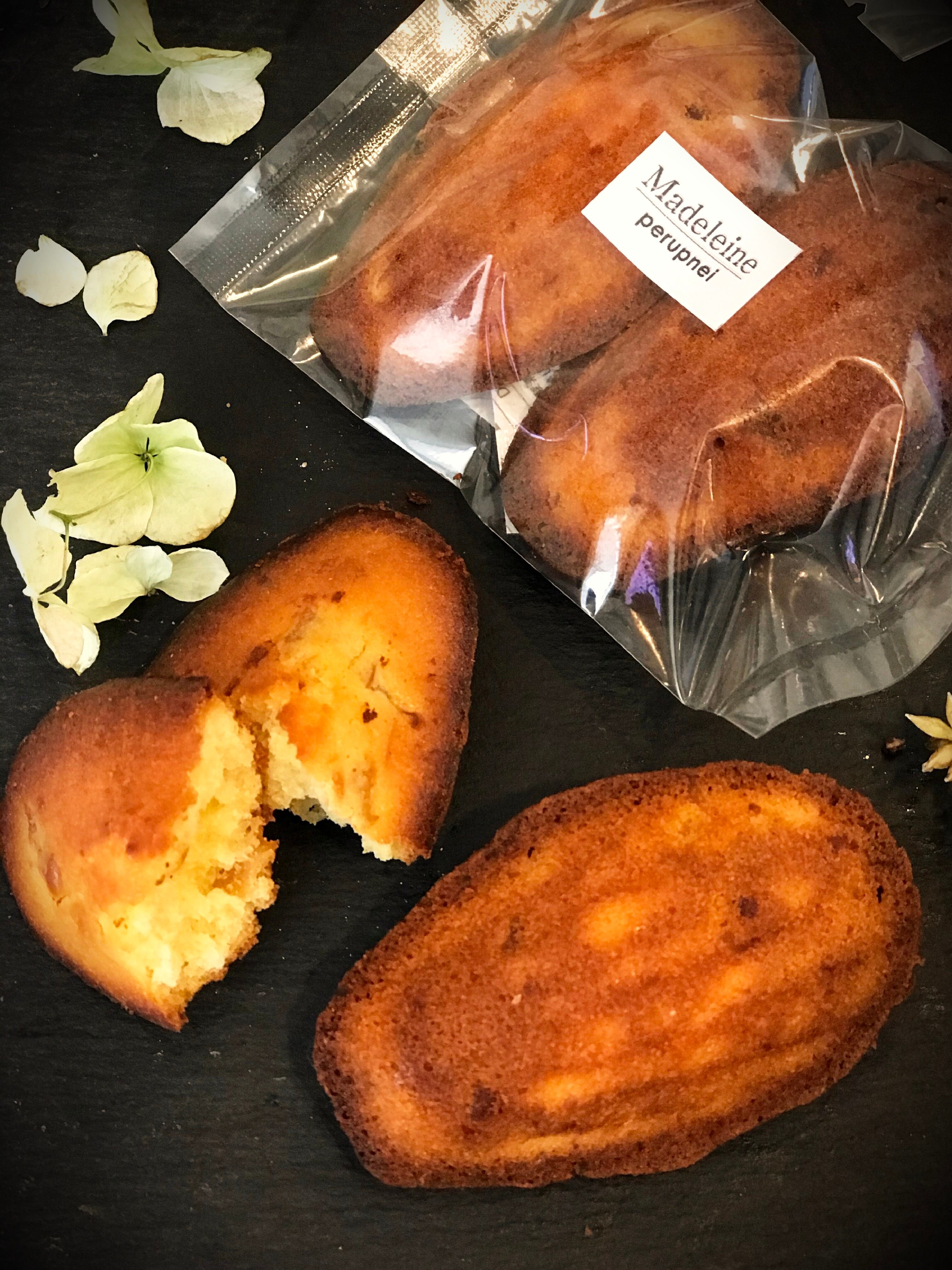 見た目には地味目な焼き上がりのマドレーヌですが、とても人気があって、まとめ買いされる方も少なくありません。セットに追加いただけるよう、たくさん焼いたので単品の方もぜひどうぞ。
