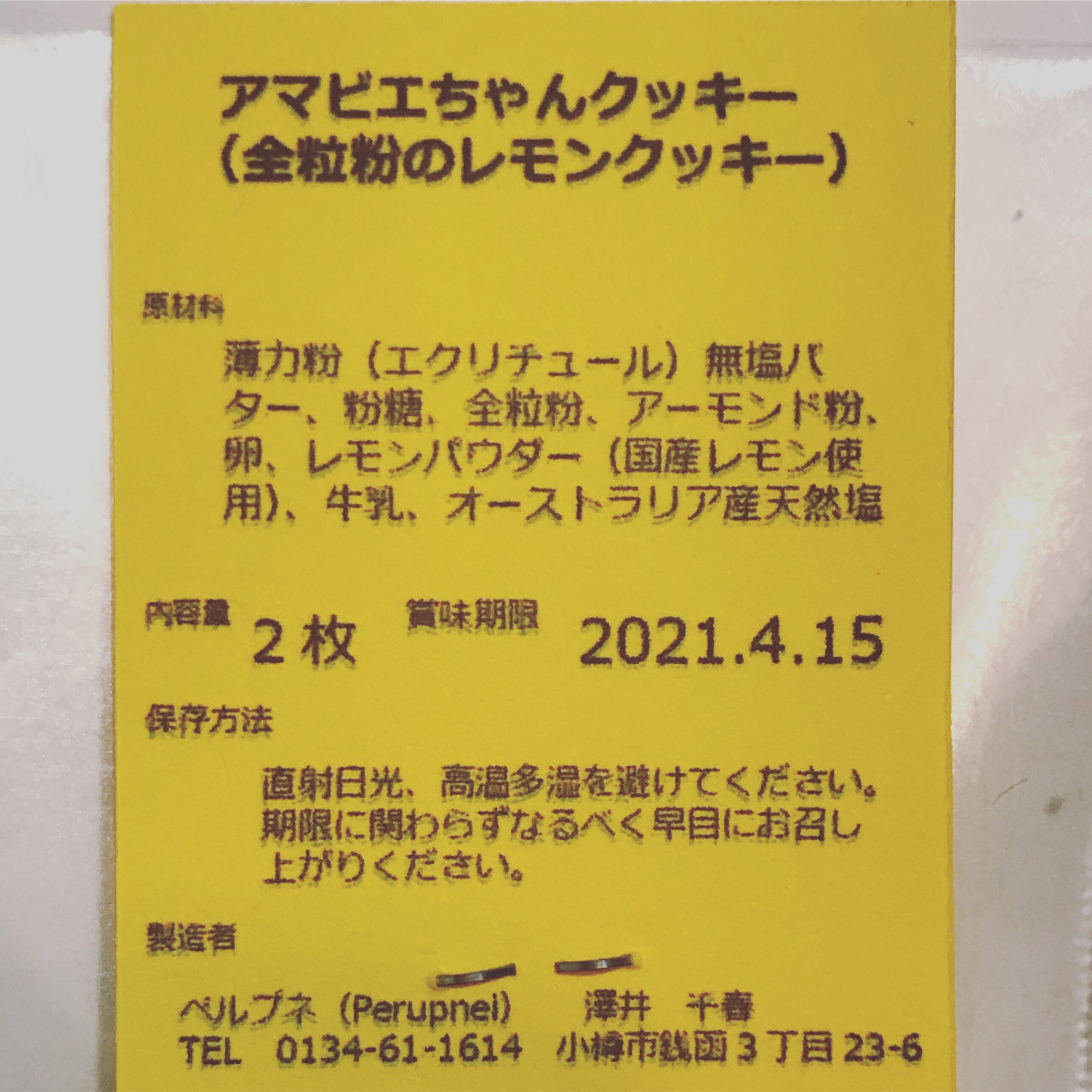 【アマビエちゃんクッキー(全粒粉のレモンサブレ)】2枚入 月イチ10月のアイテム