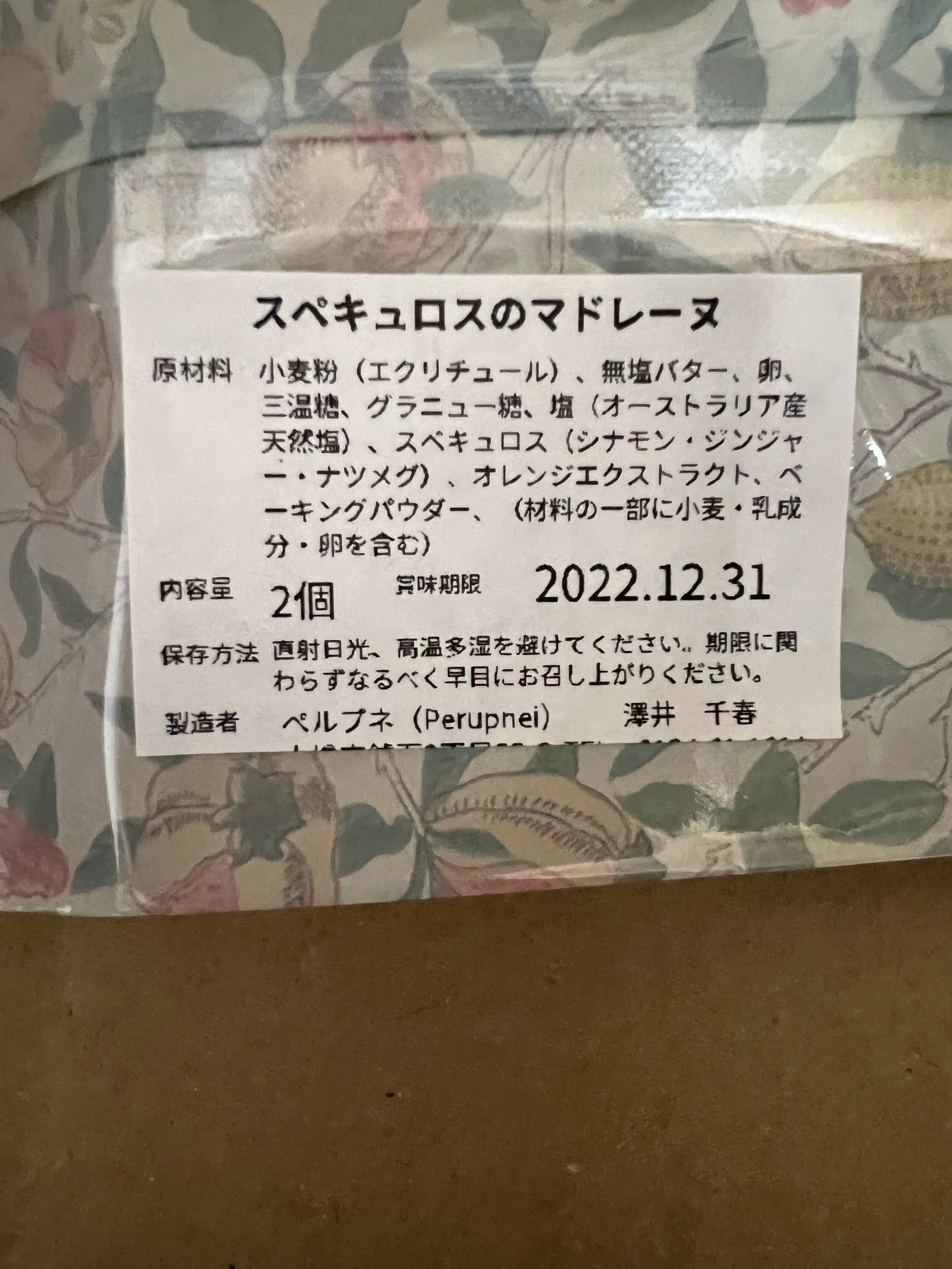 12月の月イチ恒例のマドレーヌはスペキュロス