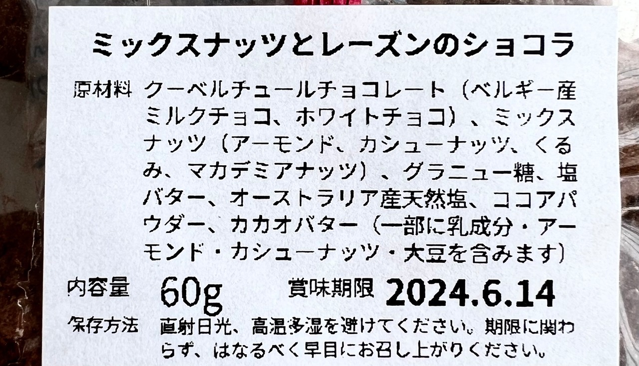 「ミックスナッツとレーズンのショコラ」